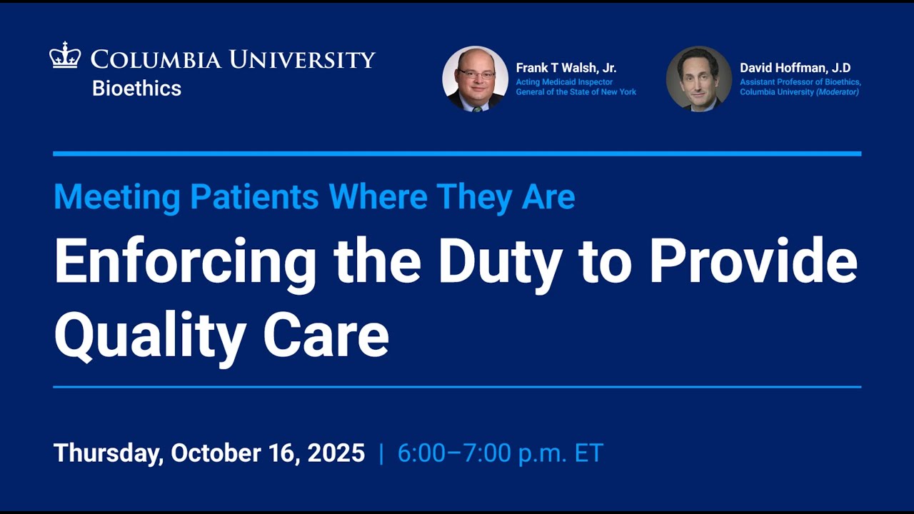 WhoDavid N. HoffmanAssistant Professor of Bioethics, Columbia UniversityJorge Rivera-AgostoAssociate Faculty, Bioethics; Assistant Deputy Counsel, New York State Senate; Adjunct Assistant Professor, Hofstra Northwell School of Nursing and Physician Assistant StudiesJulia IyasereSpeaker; Executive Director, Dalio Center for Health Justice, NewYork-PresbyterianDanurys SanchezSenior Research Staff Associate, Taub Institute for Research on Alzheimer’s Disease and the Aging Brain, Columbia University Irving Medical Center