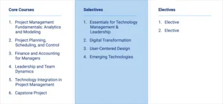 Four selective courses (12 credits) specific to the Technology Management concentration.