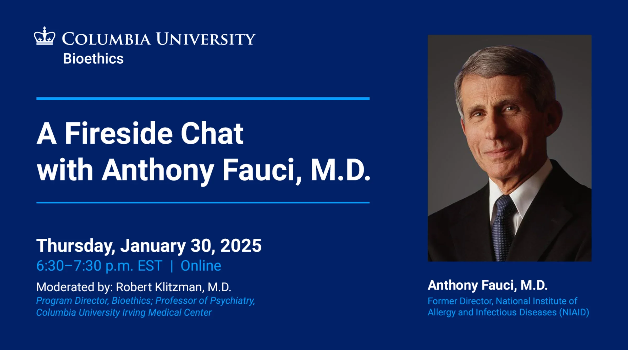 Join us for an interactive, online fireside chat with Dr. Fauci as he examines our nation’s past, present, and future responses to pandemics and other public health crises.