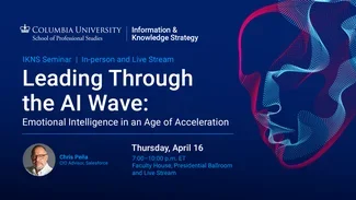 Artificial intelligence is advancing at extraordinary speed. Boards are demanding strategies, investors want road maps, and most professionals are quietly wondering what it means for them. Join Columbia’s M.S. in Information & Knowledge Strategy (IKNS) program and Salesforce CIO Advisor Chris Peña for our next IKNS Seminar. Chris will reframe the AI conversation away from tools and toward leadership. Drawing from his experience leading enterprise technology at scale, along with themes from his book Déjà Boom: Hype, Hope, and Human Intelligence in the AI Era, Chris will explore the human side of technological transformation as well as the career challenges facing the next generation of professionals in an AI-driven world.