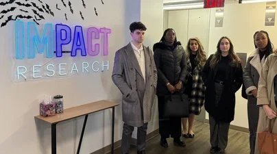 Students take a tour of Impact Research office space and hear about the work they do in polling and campaign management.