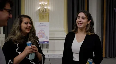 Current student Aminah Mouza Al-Jaber and alumna Jordan Scmidt network with congressional staffers at Cannon House Office Building in Washington, D.C.
